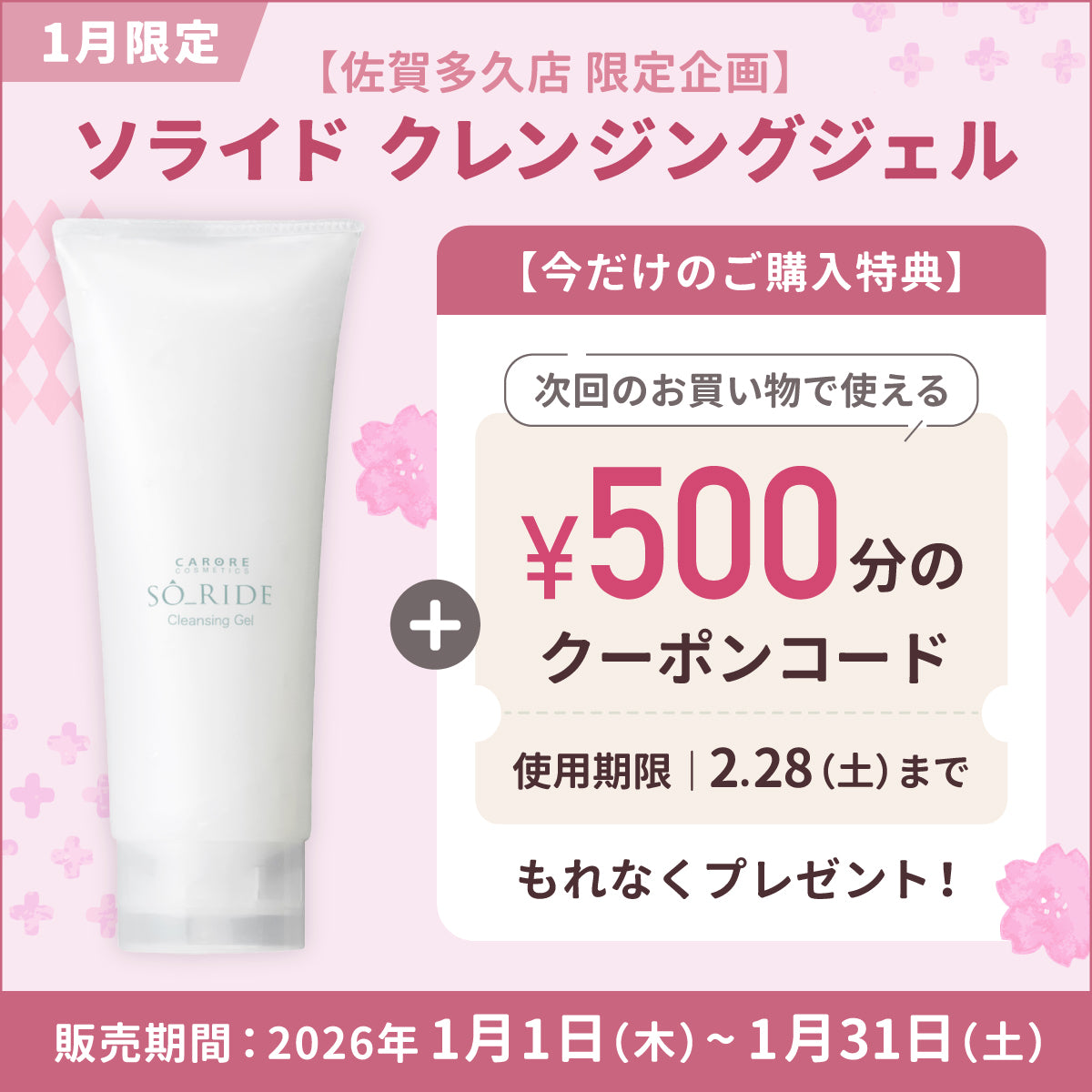 1月1日(木)〜1月31日(土)までの期間限定で、この商品ページからソライド クレンジングジェルをお買い上げいただくと、次回使える500円分のクーポンコードをプレゼント!
